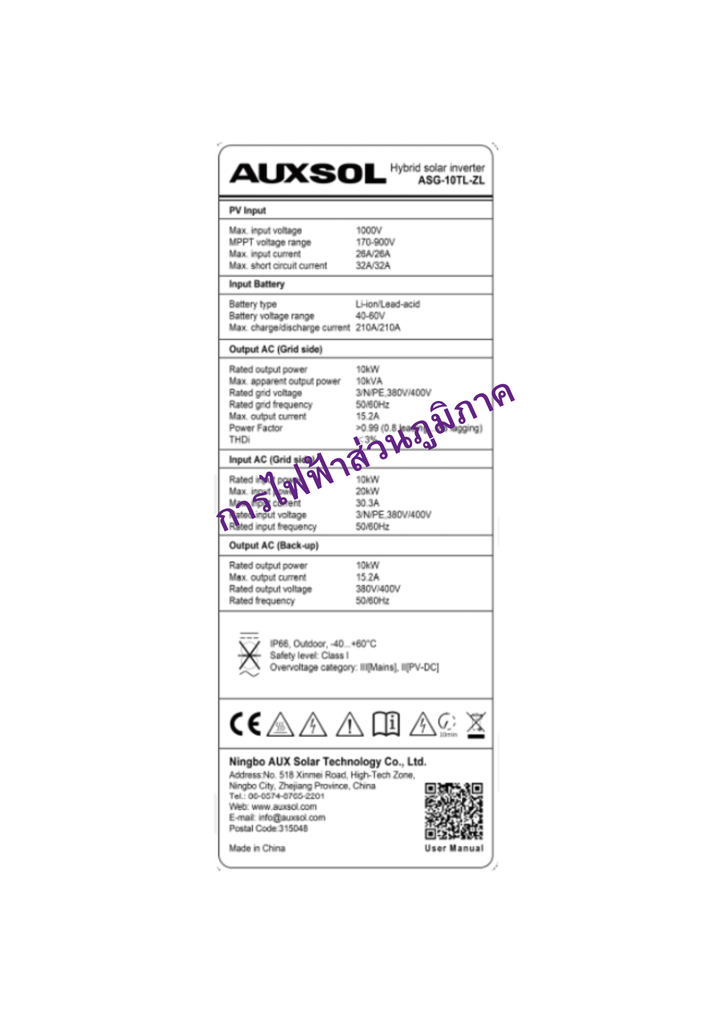 สำหรับการใช้งานกับระบบที่มีกำลังการผลิตติดตั้งรวม