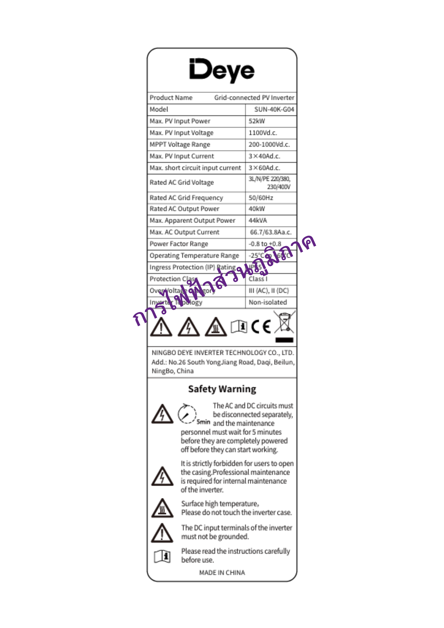 สำหรับการใช้งานกับระบบที่มีกำลังการผลิตติดตั้งรวม