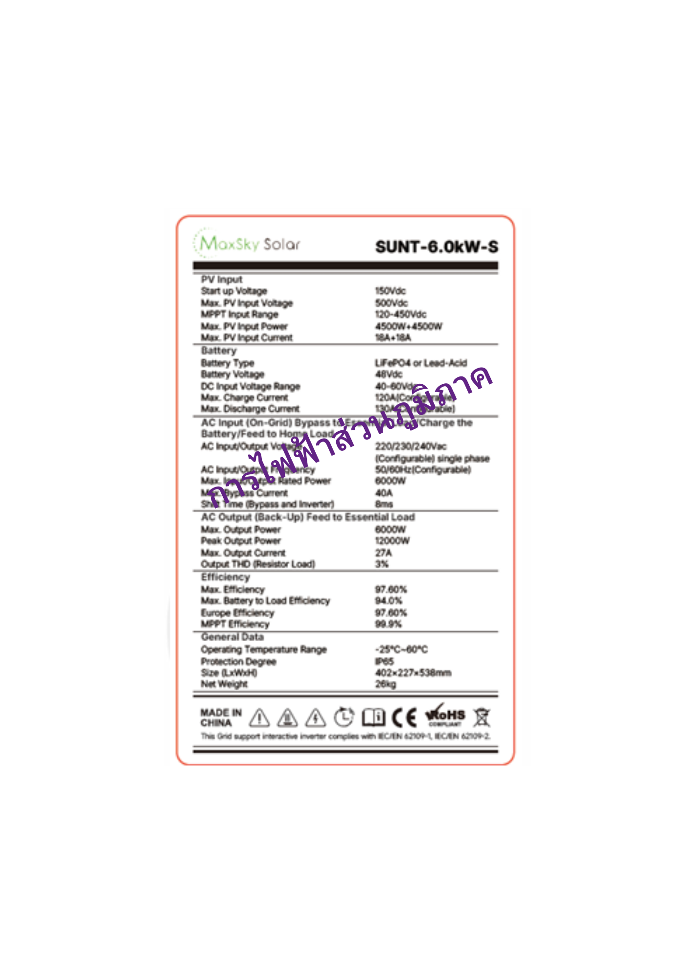 MaxSky Solar SUNT-6.0kW-S