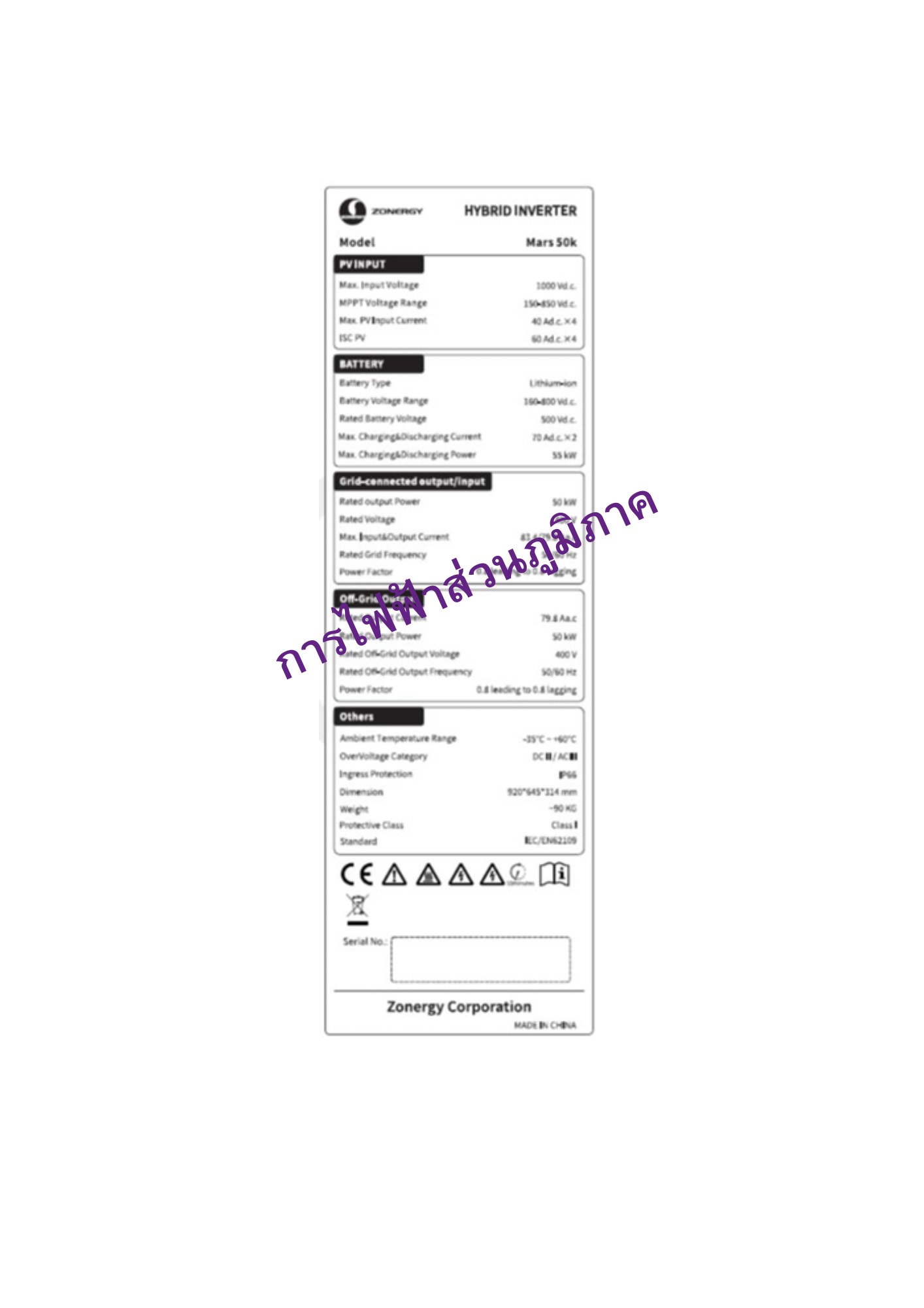 สำหรับการใช้งานกับระบบที่มีกำลังการผลิตติดตั้งรวม